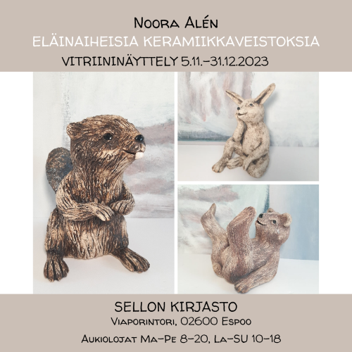 - Sellon kirjasto, Espoo. Vitriininäyttely 5.11.-31.12.2023