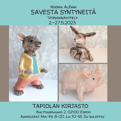 - Tapiolan kirjasto, Espoo. Vitriininäyttely 2.-27.5.2023