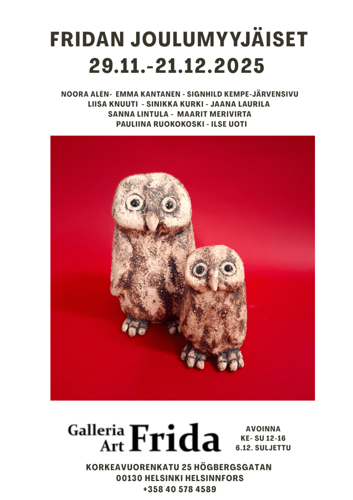 - Galleria Art Frida, Helsinki. Fridan joulumyyjäiset 29.11.-21.12.2025
